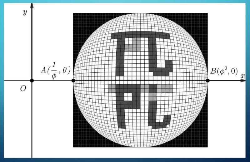 PHI als verhouding van de lengte van twee lijnstukken via twee vierkanten en een cirkel